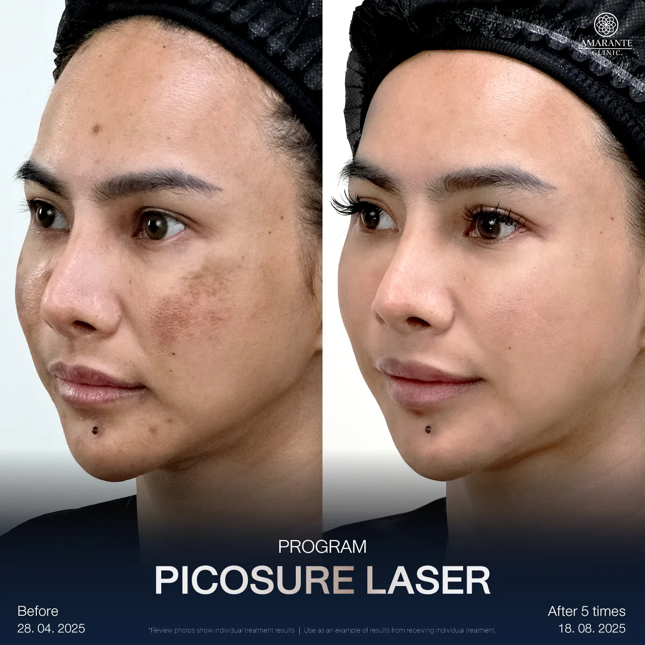 การดูแลปัญหานี้จึงควรเน้นการจัดการเม็ดสีอย่างมีประสิทธิภาพ ด้วยโปรแกรม PicoSure Pro Laser และ PicoSure Laser สามารถช่วยแตกเม็ดสีให้มีขนาดเล็กลง ช่วยให้ฝ้า กระ และรอยดำดูจางลง พร้อมปรับผิวให้กระจ่างใสและเรียบเนียนขึ้น ควบคู่กับ โปรแกรม Fillstim ฝ้า ที่ช่วยฟื้นฟูผิวในระดับโครงสร้าง ลดการกระตุ้นเม็ดสี และเสริมให้ผิวแข็งแรงจากภายใน เหมาะสำหรับผู้ที่มีปัญหาฝ้าเรื้อรังหรือเป็นซ้ำง่าย