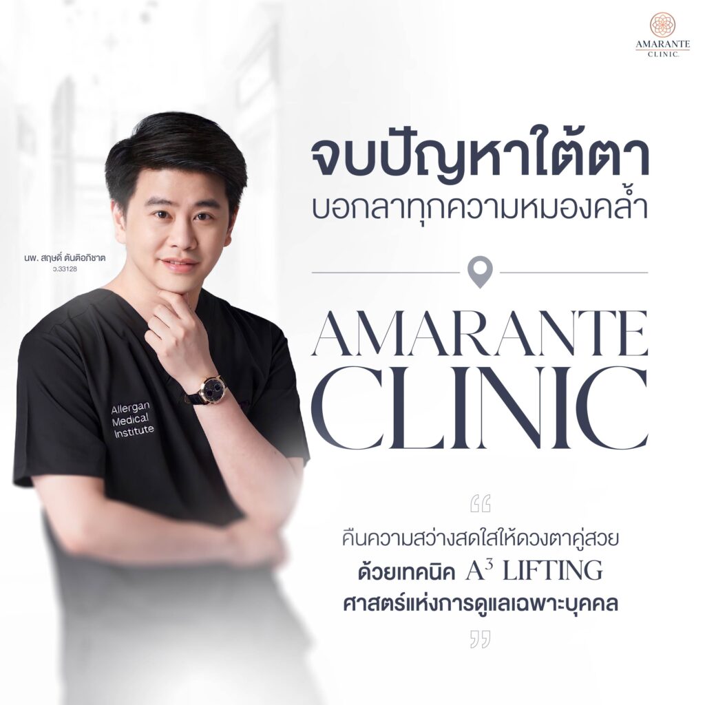 - Amarante Clinic มอบผลลัพธ์ใต้ตาสวย เป็นธรรมชาติ ด้วยเทคนิค A³ Lifting เทคนิคเฉพาะพิเศษ เปลี่ยนหน้าโทรมให้ดูสดใสกว่าที่เคย
